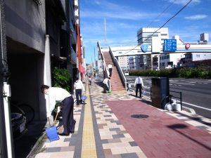 当社は毎月1回、社屋のある中区平野町周辺の国道2号線歩道の清掃活動を行っています。