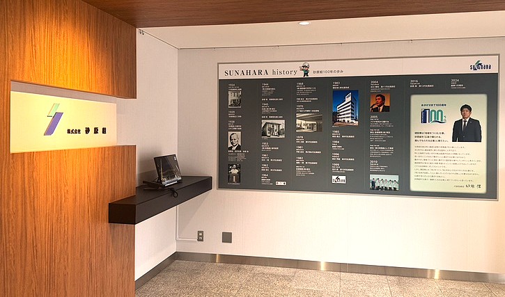 このヒストリーパネルは、当社の歴史の他、代表取締役 砂原 傑の思いが刻まれておりますので、当社にお立ち寄りの際にはぜひご覧下さい。